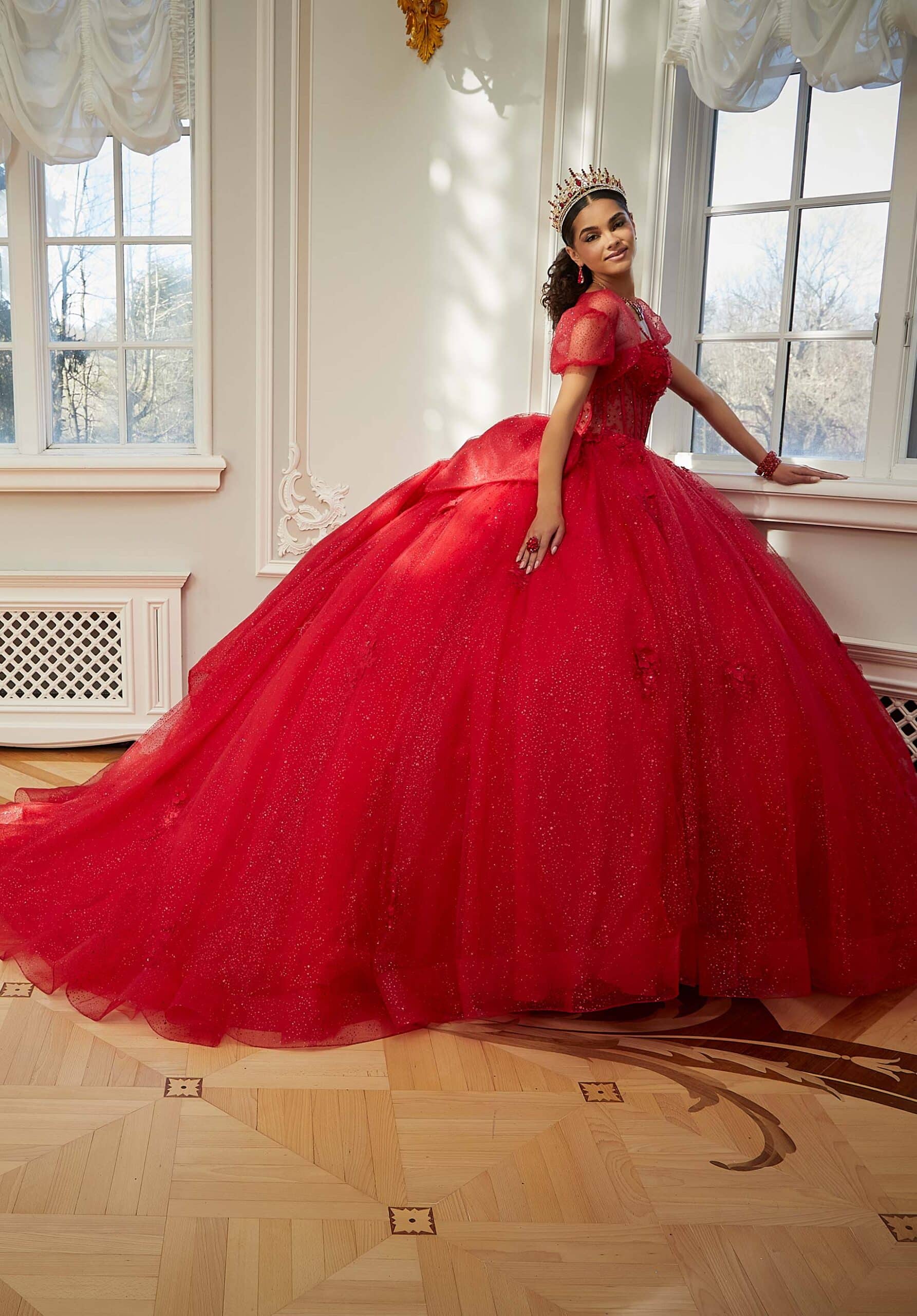 Ball Gown with Glam Crystal Beading and 3D Floral Lace Appliqués